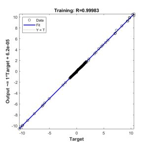 From the analysis of the results after training the artificial neural network, shown in Fig.7(a), it is seen that the regression value is close enough to unity, which is the main criterion for determining the training as successful.