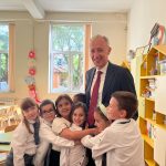 Министърът поздрави директора на училището Илияна Чалъкова и колегите ѝ за това, че възпитават добри деца. В рамките на урока децата сглобяват изречения и ги поставят на Табло на добродетелите. Те отговарят уверено и на въпросите на своята учителка, свързани с ценностите в отношенията с родители, учители и с други деца.