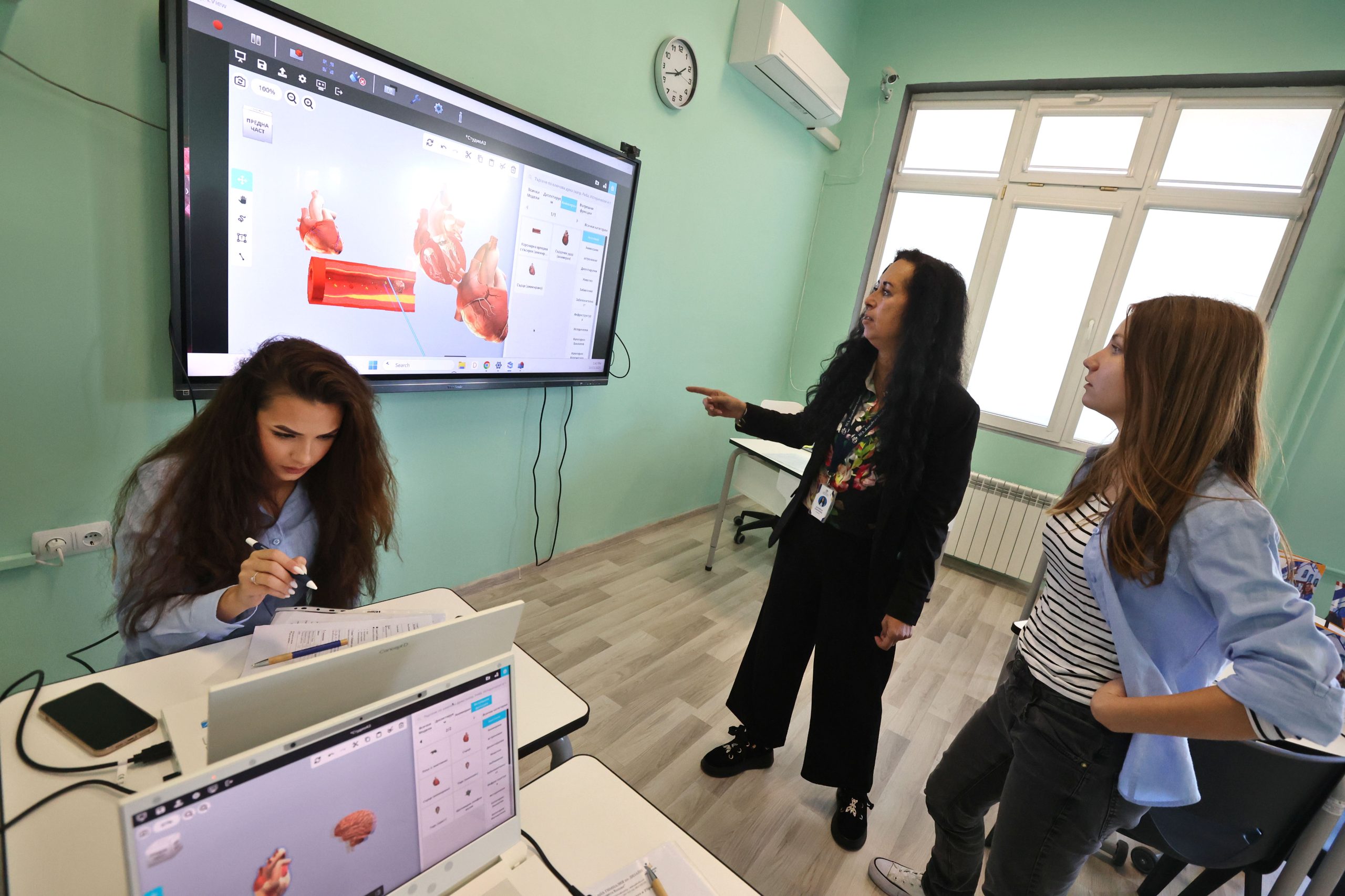 По проекта са оборудвани и седем помещения с техника за високотехнологични и свързани класни стаи – интерактивни монитори с OPS модул и лаптопи. Те са с едно повече от изискваните по проект.
