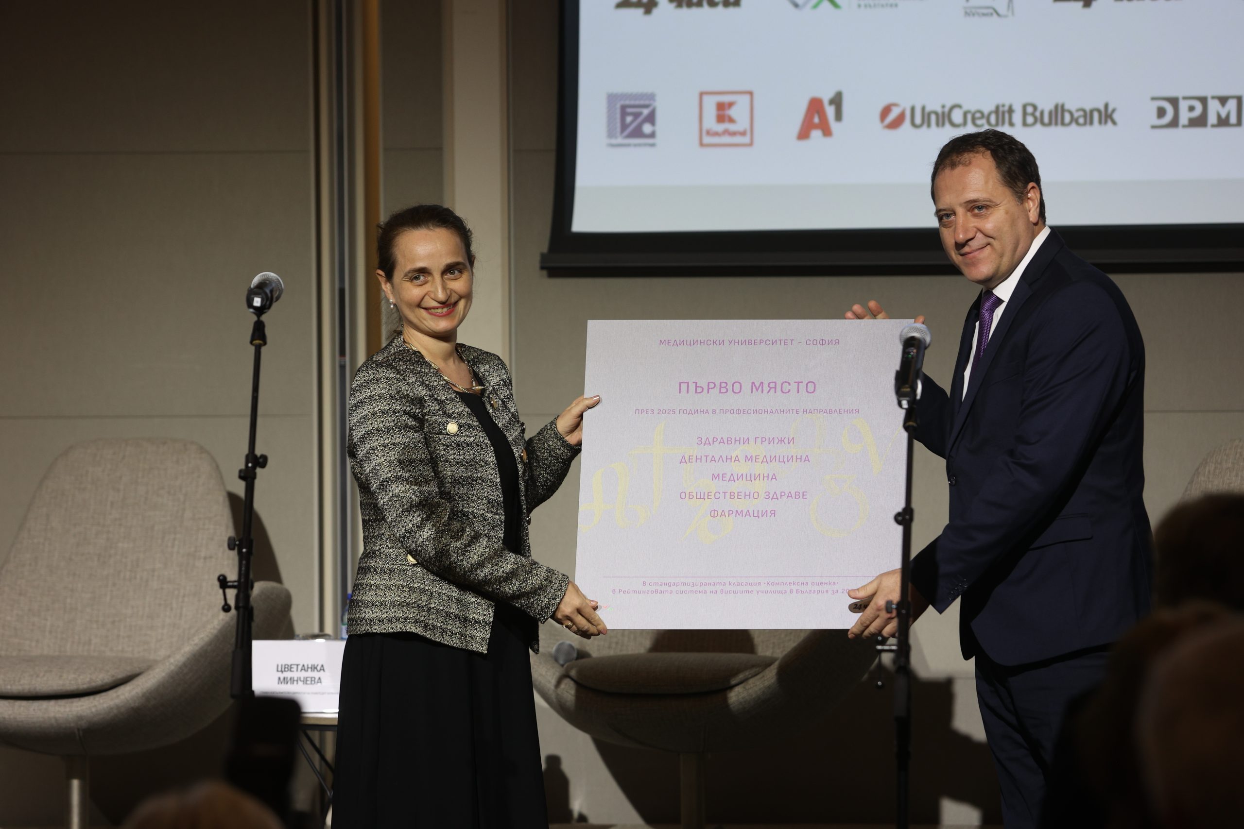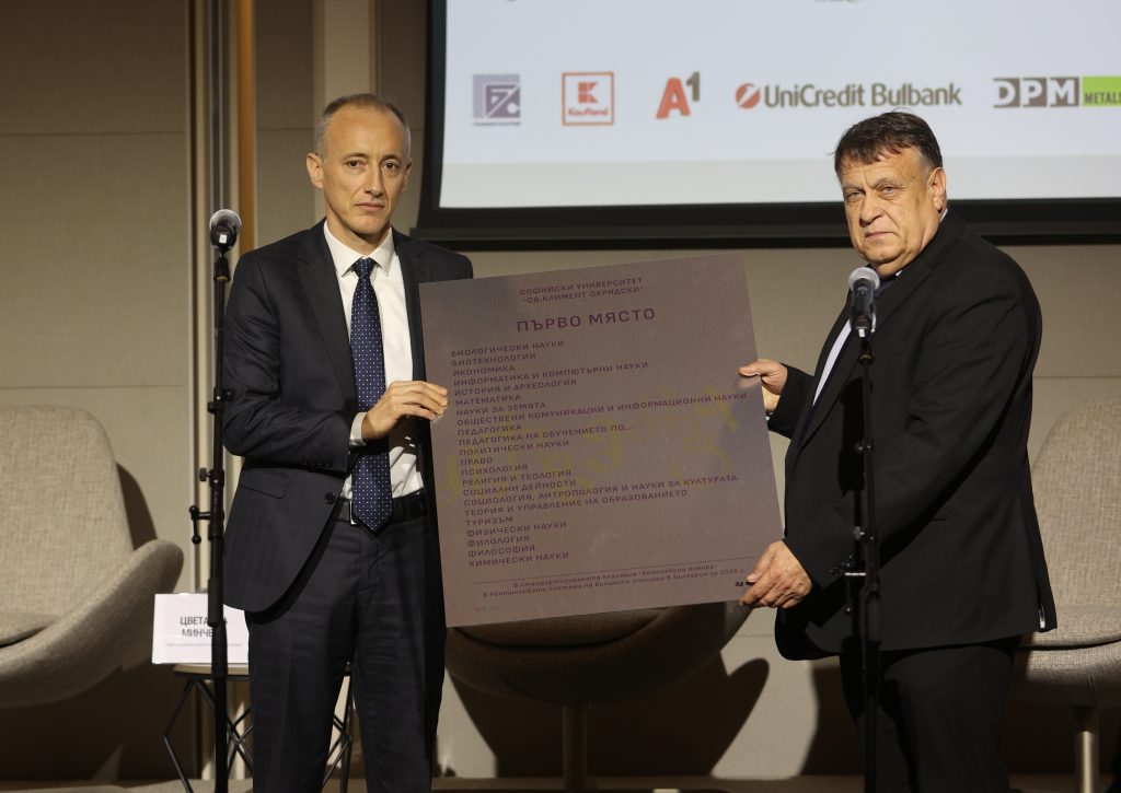 Министър Вълчев връчи Голямата награда на Софийския университет „Св. Климент Охридски“, който заема първо място в 22 от общо 52 професионални направления в Рейтинговата система.