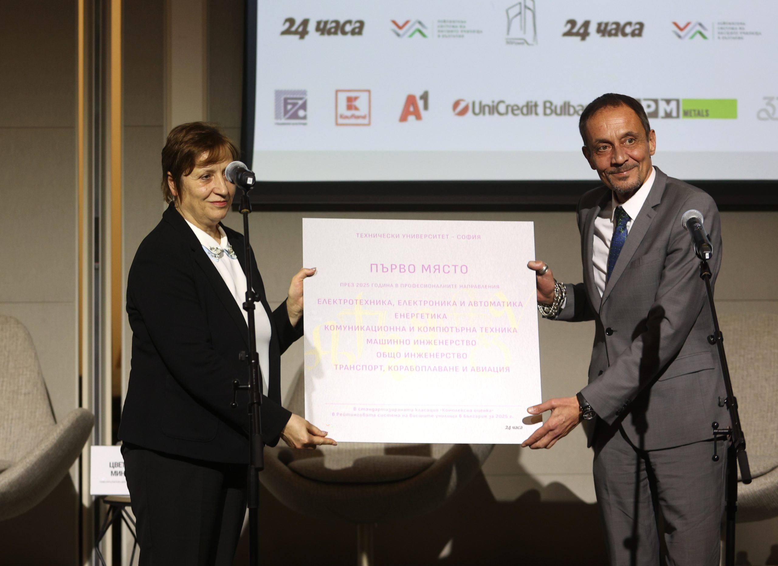 Техническият университет – София, който е с 6 първи места по направления във важните за икономиката технически специалности, получи отличие от председателя на БАН чл.-кор. Евелина Славчева.