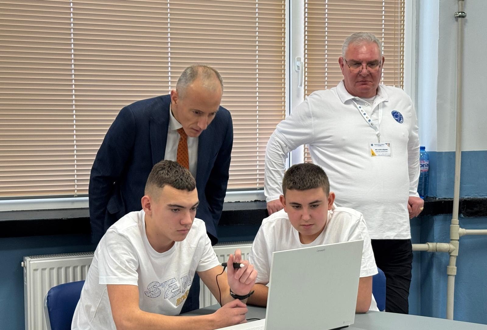 Учениците работят във виртуална лаборатория със стереоскопични лаптопи и zSpace технология, което позволява интерактивно обучение, развиващо логическото мислене, дигиталните и инженерните компетентности.