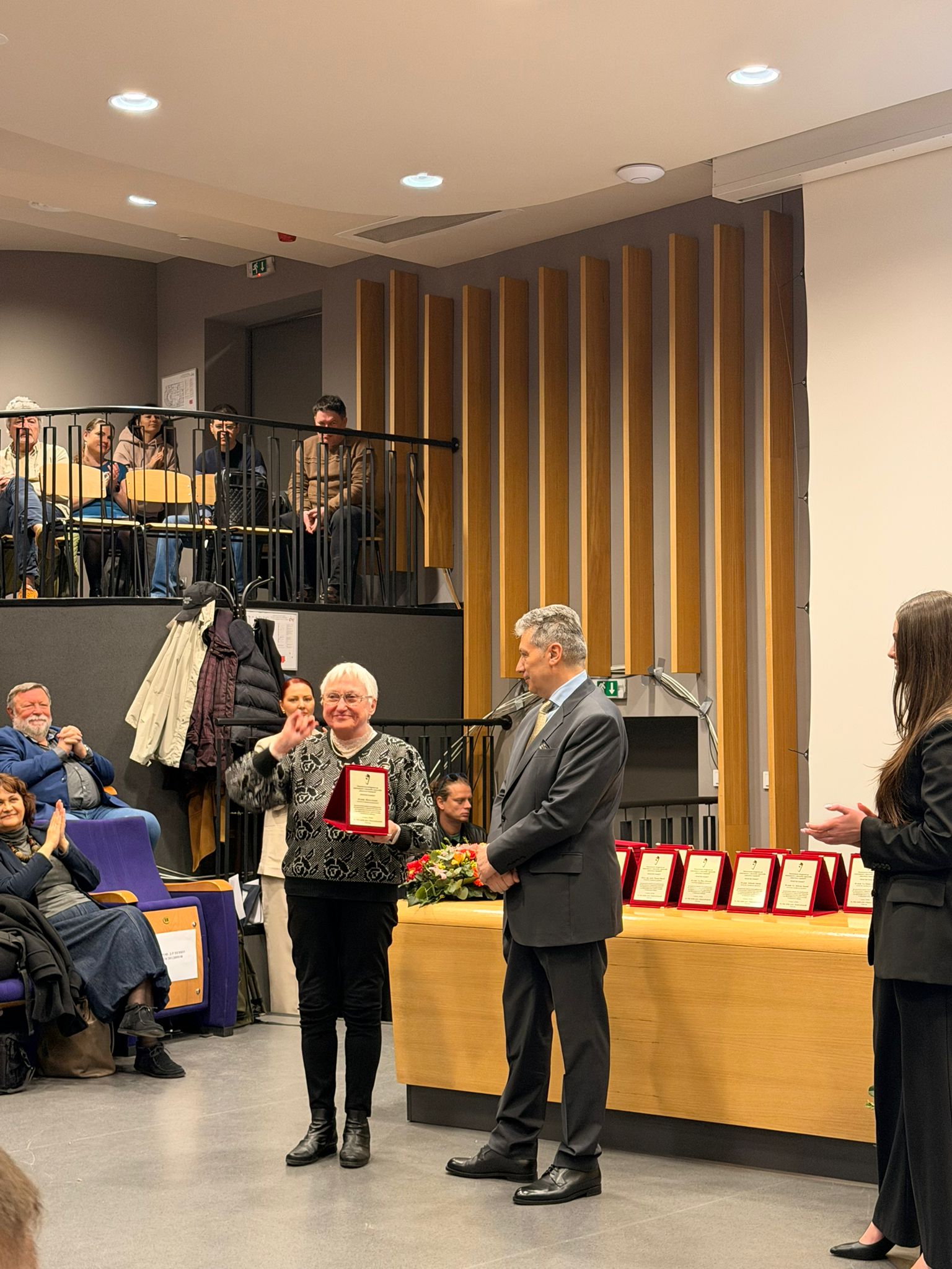 Поздравителни адреси са прочетени от името на президента Илияна Йотова, както и от кмета на Бургас Димитър Николов. Поздравления отправят и представители на академичната общност, сред които Българската академия на науките, Академията за музикално, танцово и изобразително изкуство „Проф. Асен Диамандиев“ – Пловдив, Националната спортна академия, Техническият университет и Бургаската художествена галерия.
