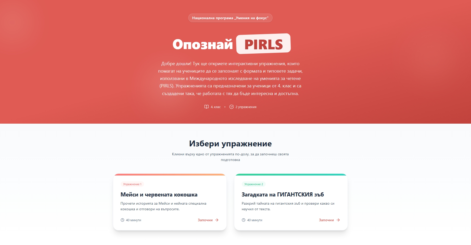 Към момента в нея са достъпни две упражнения, насочени към четвъртокласниците.