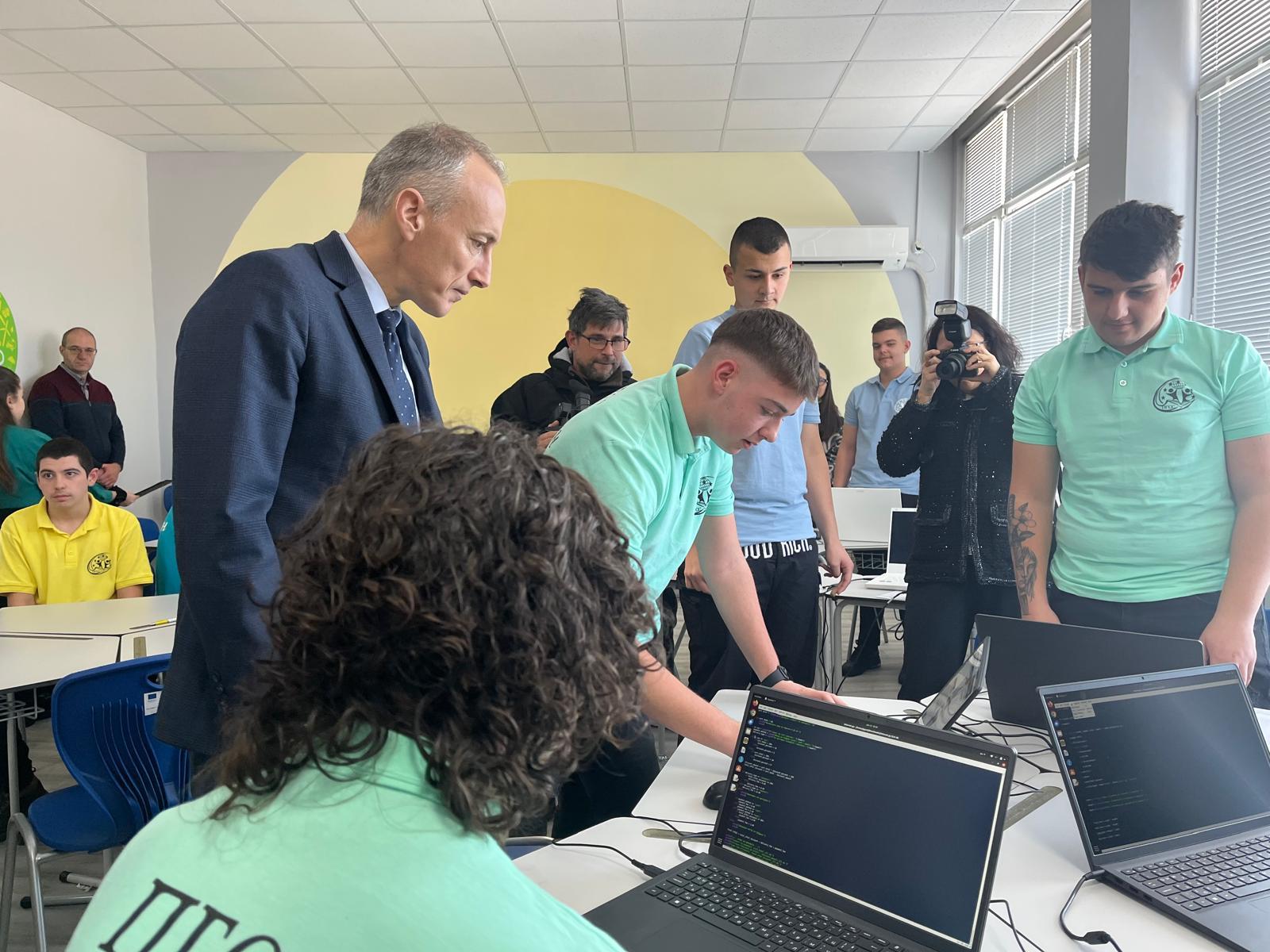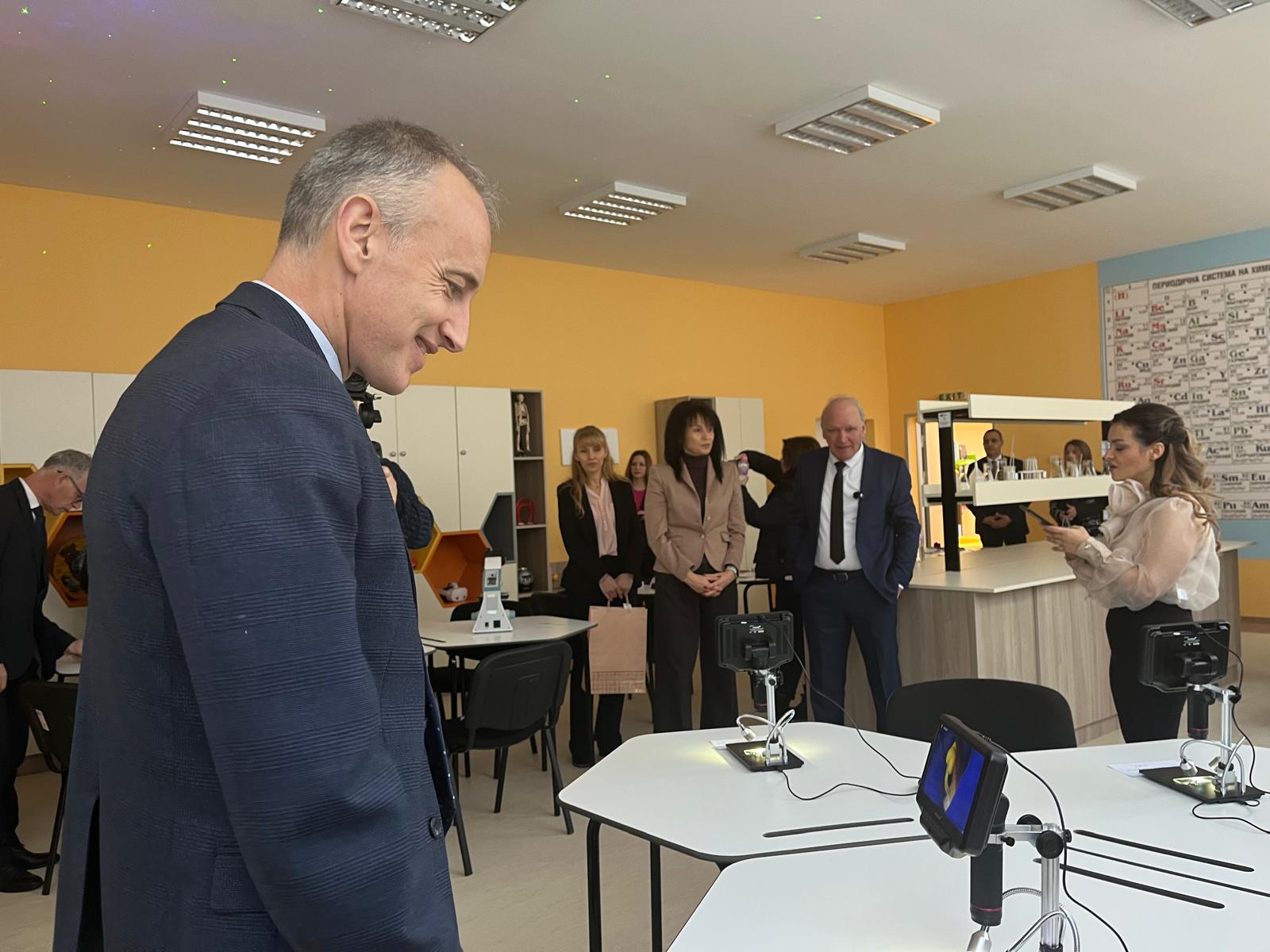 Министър Вълчев, кметът Карачолов и директорът Киро Пенев прерязаха лентата на новото пространство. В него чрез новите технологии и практическо обучение имат амбицията да променят стандартните образователни модели, като въведат учениците в нова среда, която ще развие креативно мислене и ще повиши мотивацията за развитие на нови знания и умения в направления „Природни науки“ и „Математика и информатика“.