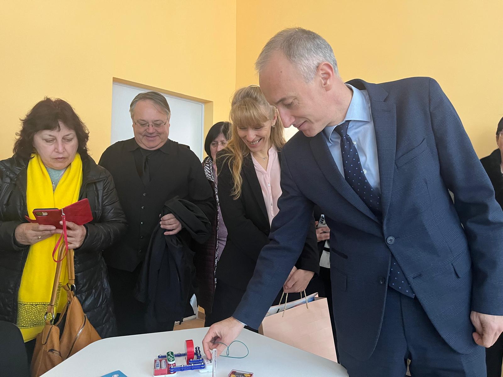 Той посети и Средно училище „Пейо Крачолов Яворов“, където приключва изграждането на STEM център за 185 905 евро, който ще е част от съвременната образователна среда. Центърът е в направления „Дизайн и 3D прототипиране“, „Природни науки“, „Математика и информатика“ и „Роботика и киберфизични системи“.