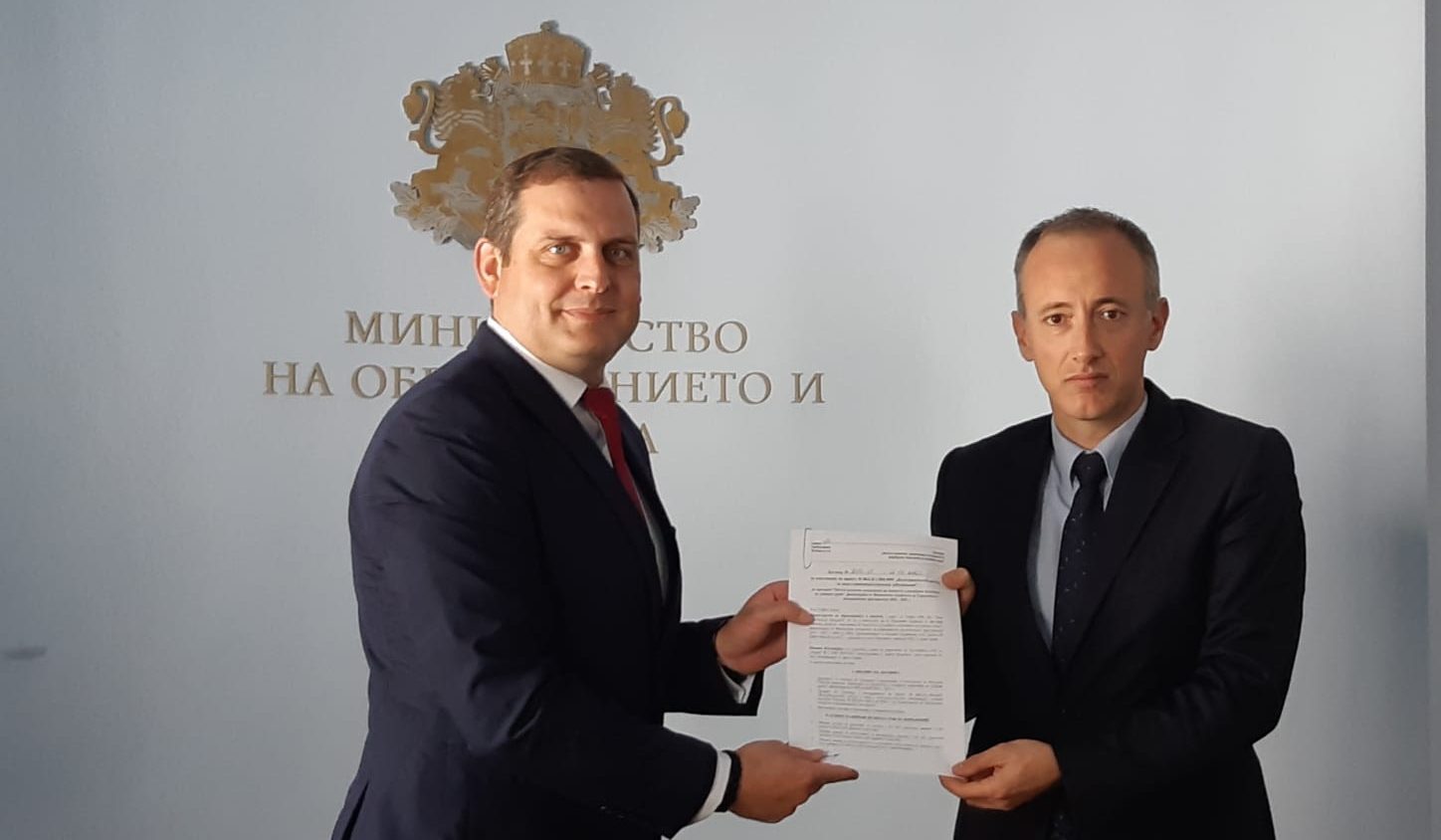 Министерството на образованието и науката предоставя 1 223 983 лева на община Костинброд за осигуряване на цялостното функциониране на възстановителния център за деца и младежи с онкохематологични заболявания. За реализацията на проекта министър Красимир Вълчев и кметът Трайко Младенов (вляво на снимката) подписаха договор.
