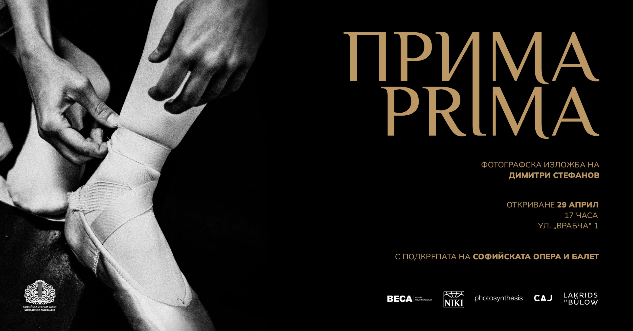 Изложбата „Прима“ се открива точно на 29 април – Международния ден на балета. Вдъхновени от примабалерината Марта Петкова, фотографиите разказват на посетителите на Софийската опера и балет за онова, което се случва, преди салонът да се изпълни с очакване за съвършенство. „Повдигнах крайчеца на завесата и надникнах – казва Димитри. – Изложбата представя най-човешкият и автентичен портрет на балетното изкуство и се надявам да вдъхнови младите хора да следват неуморно мечтите си, също както една примабалерина.“