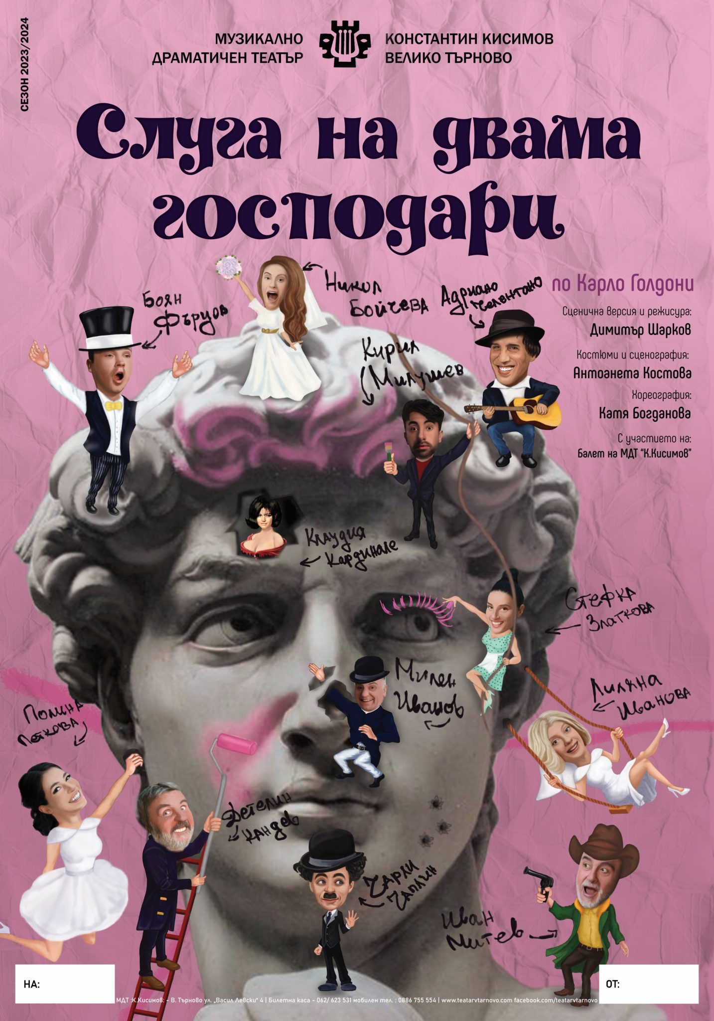 „Независимо дали правя плакат, или нещо друго – споделя опита си след първите театрални афиши Силвия, – обичам да използвам ярки цветове. Вдъхновяват ме плакатите от 60-те и 70-те години на XX век, които се характеризират с абстрактни форми и силно присъствие на цветовете. Затова заложих на яркостта при плаката на „Слуга на двама господари“. Тръгнах от идея на режисьора Димитър Шарков за композицията – главата на Давид и разрушаването ѝ от героите. Радвам се, че по „Плакатът работи“ ще мога да си сътруднича отново с Великотърновския театър.“