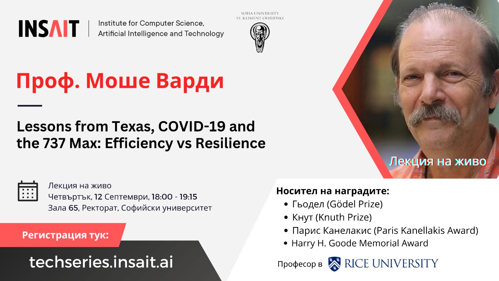 Световноизвестният компютърен учен проф. Моше Варди ще изнесе открита лекция в Софийския университет „Св. Климент Охридски“ на 12 септември в зала 65 в Ректората на висшето училище.