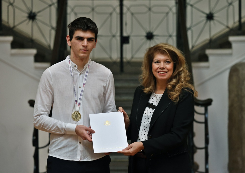Осемте златни медалисти от международни олимпиади по науки получиха грамотите си от вицепрезидента Илияна Йотова.