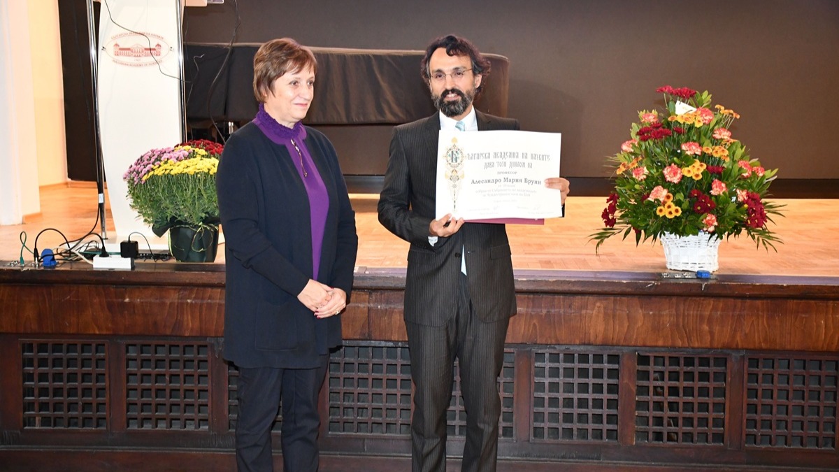 Изтъкнатият италиански палеославист и българист проф. Алесандро Мария Бруни беше удостоен от председателя на БАН чл.-кор. Евелина Славчева с диплом за чуждестранен член на Българската академия на науките. Церемонията се проведе днес в зала „Проф. Марин Дринов“ на Академията.