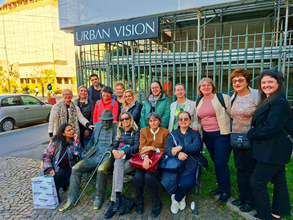 „Първият ден от нашето пътуване в Италия започна с разходка в сърцето на Милано. Сред величието на града, само на 400 метра от катедралата, се намира пейката, на която някак естествено и знаково седи скулптурата на Пенчо Славейков – създадена през 2019 г. с дарения от българската общност“, споделя Захариева.