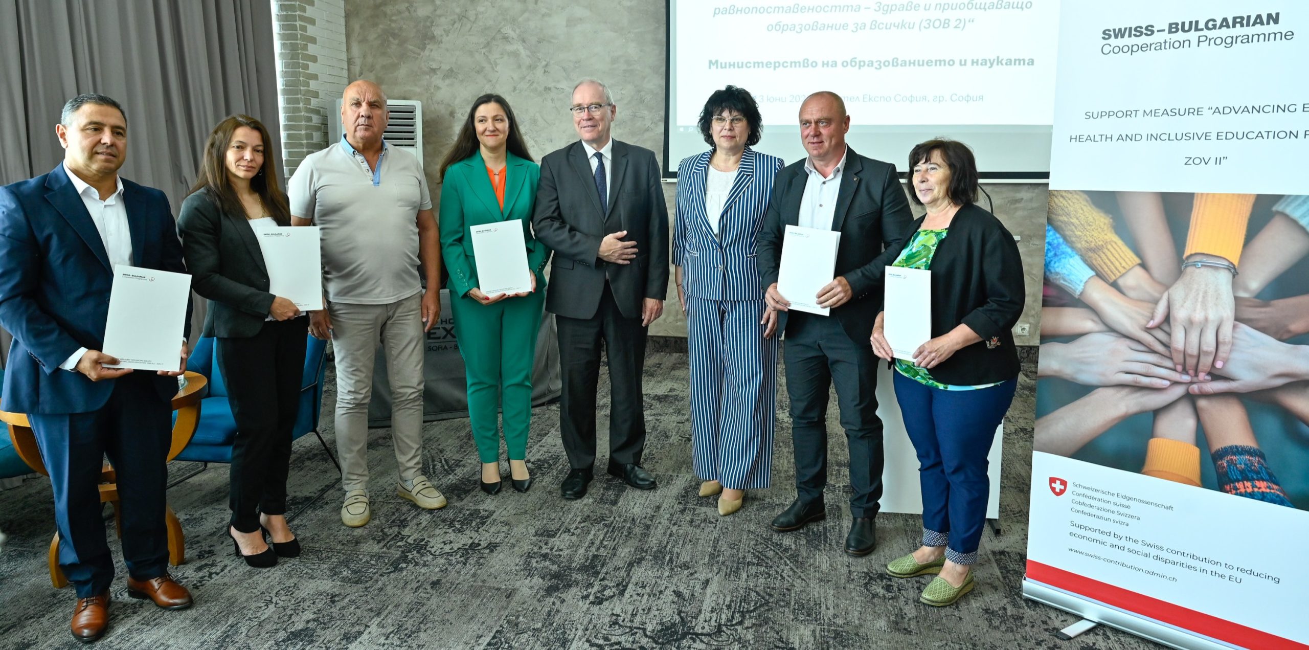 Около 2500 души от уязвими групи в малки общини в България ще получат подкрепа и допълнителни образователни, здравни, социални и административни услуги по програмата на Министерството на образованието и науката и Конфедерация Швейцария „Насърчаване на равнопоставеността: Здраве и приобщаващо образование за всички (ЗОВ II)“. Тя беше представена от заместник-министъра на образованието и науката Таня Михайлова и посланика на Швейцария в България Н. Пр. Раймунд Фурер.