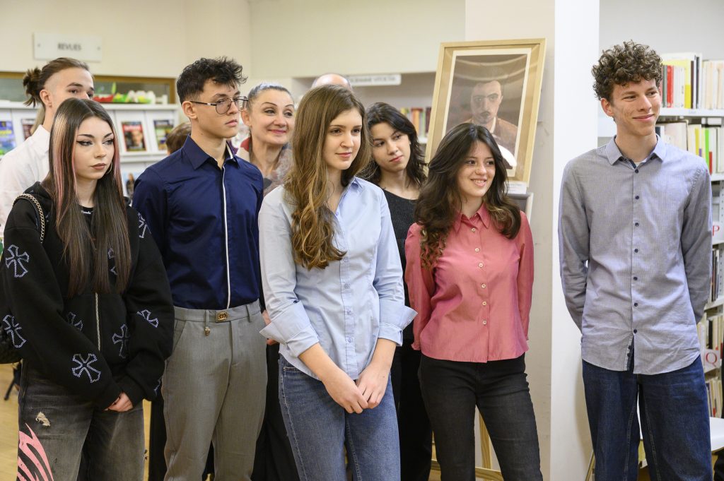 Младите художници от 9. ФЕГ „Алфонс дьо Ламартин“ на откриването на изложбата Снимка АПФБ