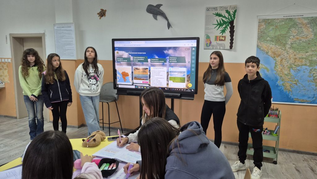 Още в началото вниманието им е привлечено чрез кратко видео, създадено с помощта на изкуствен интелект и представено чрез модерни дигитални инструменти. Това не е просто въведение, а покана за размисъл за мястото на човека в сложната система на природата. Следващите минути променят динамиката на учебния процес. Класът се разделя на екипи, а всяка група поема различна роля.