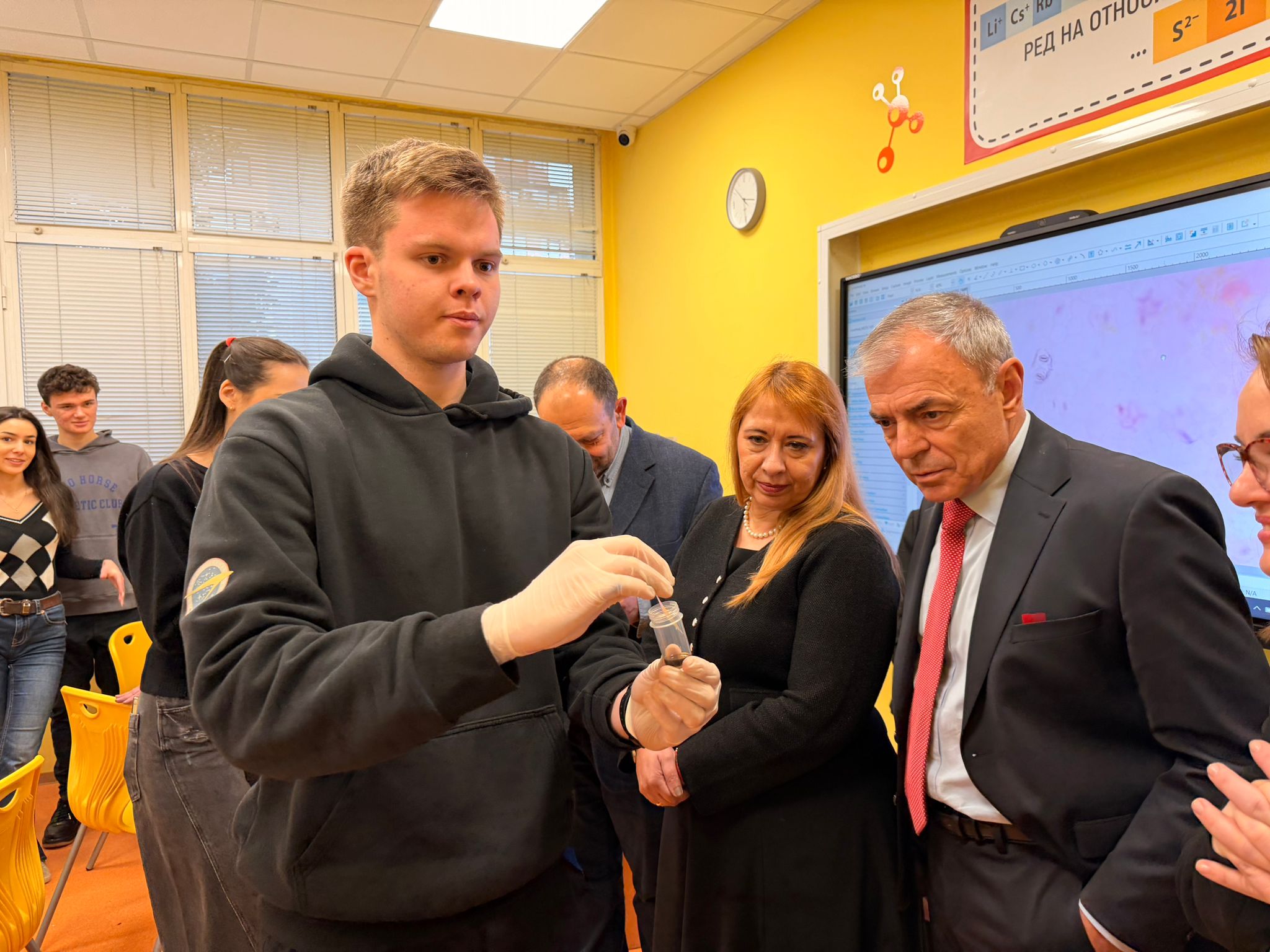 Комплекти с реактиви и материали са осигурени и в кабинета по химия. Пространството по биология разполага с „умен“ парник за отглеждане на растения, а това по компютърни науки – с нова техника.