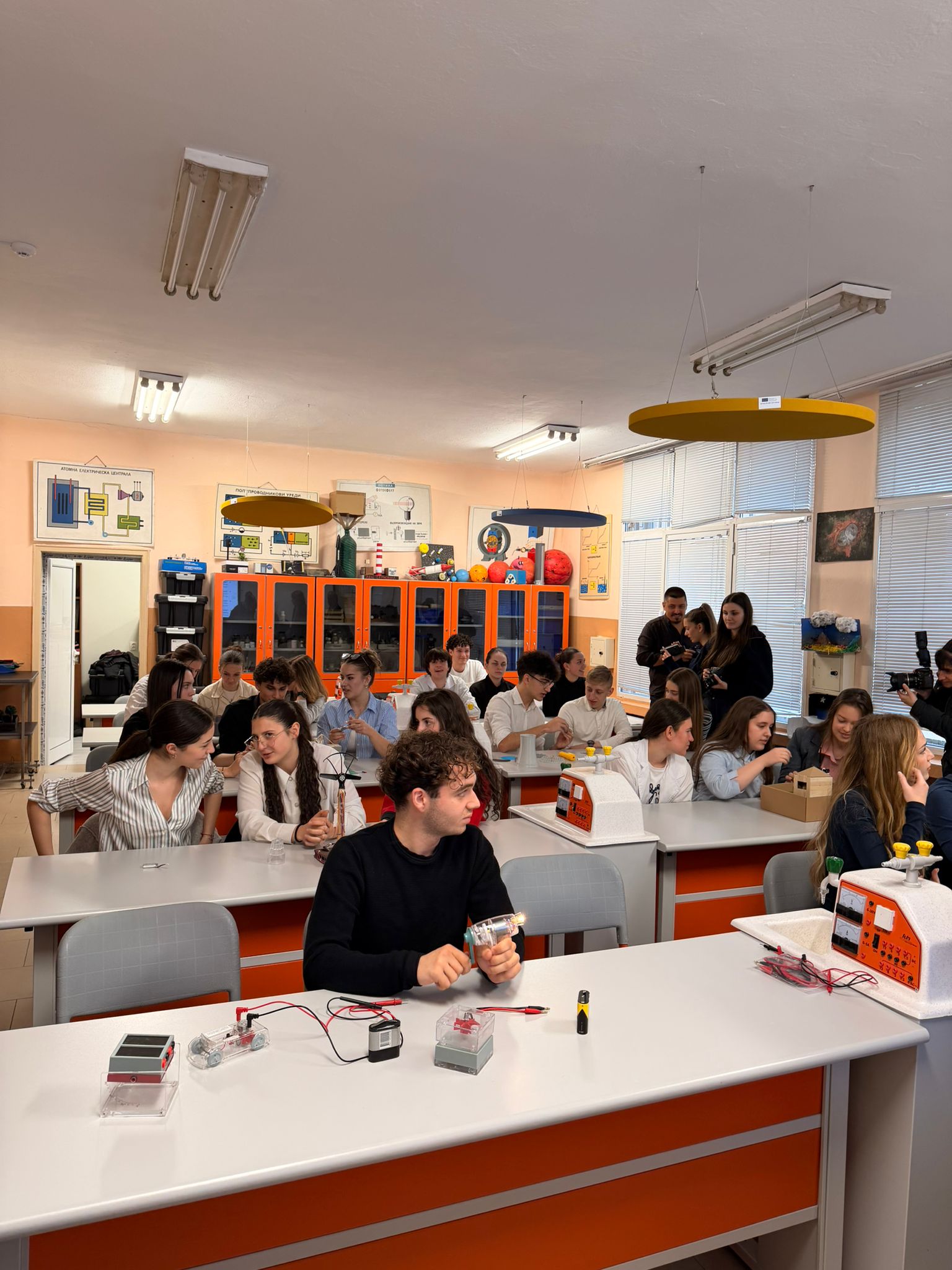 В кабинетите по природни науки са осигурени комплекти за експерименти и демонстрации, с които ученици изследват електричеството и електромагнетизма, механика, оптика, термодинамика, акустика и др.