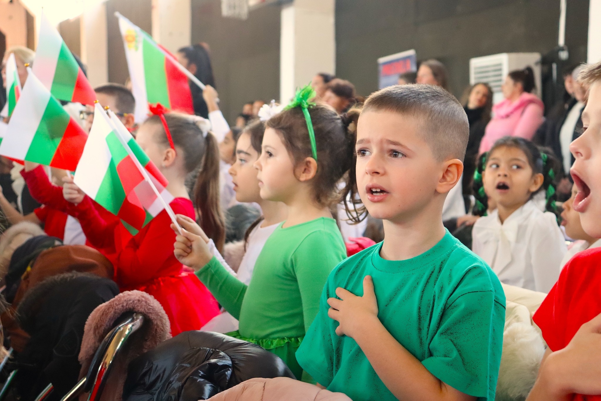 Началото на тържеството е поставено с химна на Република България, изпълнен от всички деца в залата. А в поздрава си към малките таланти и техните ръководители зам.-кметът Боряна Шалявска казва:
